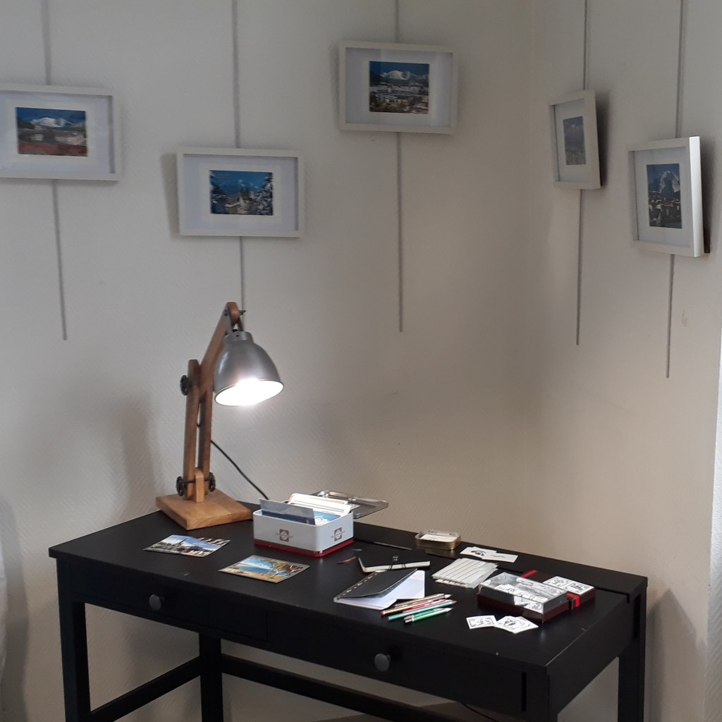 Nous laissons à votre disposition d’autres lettres, des crayons et du papier, ainsi que de la pâte adhésive pour que vous puissiez exposer vos correspondances.