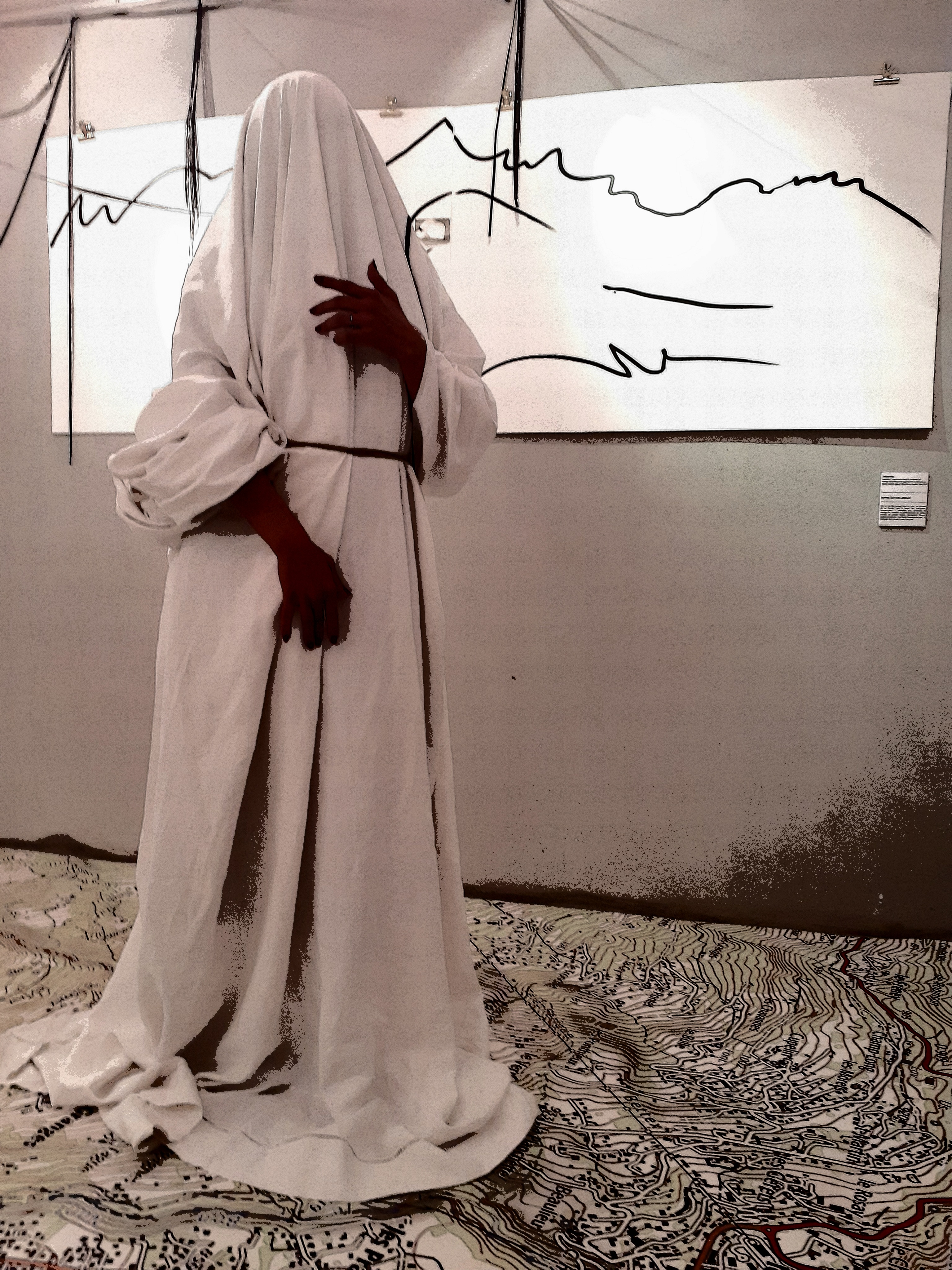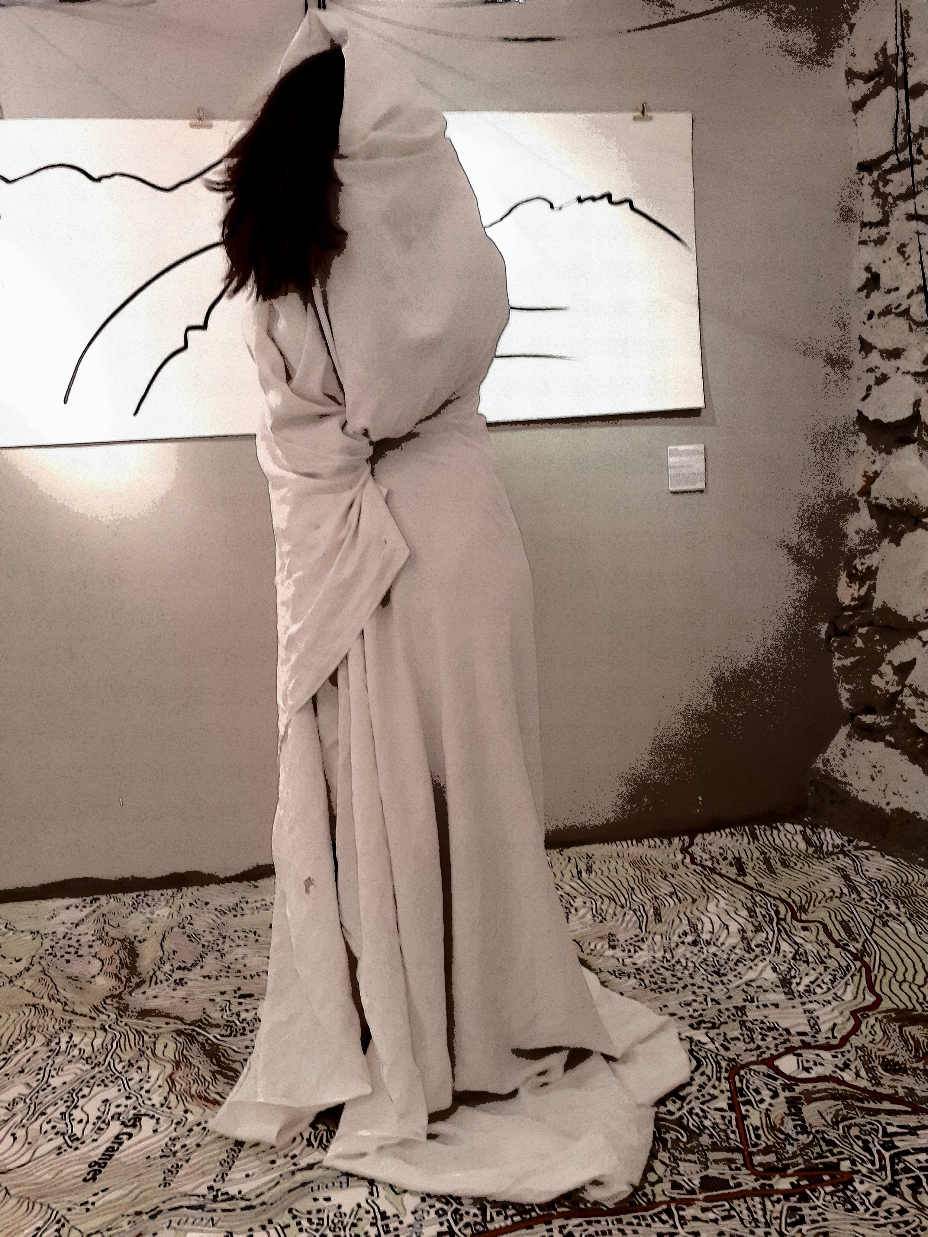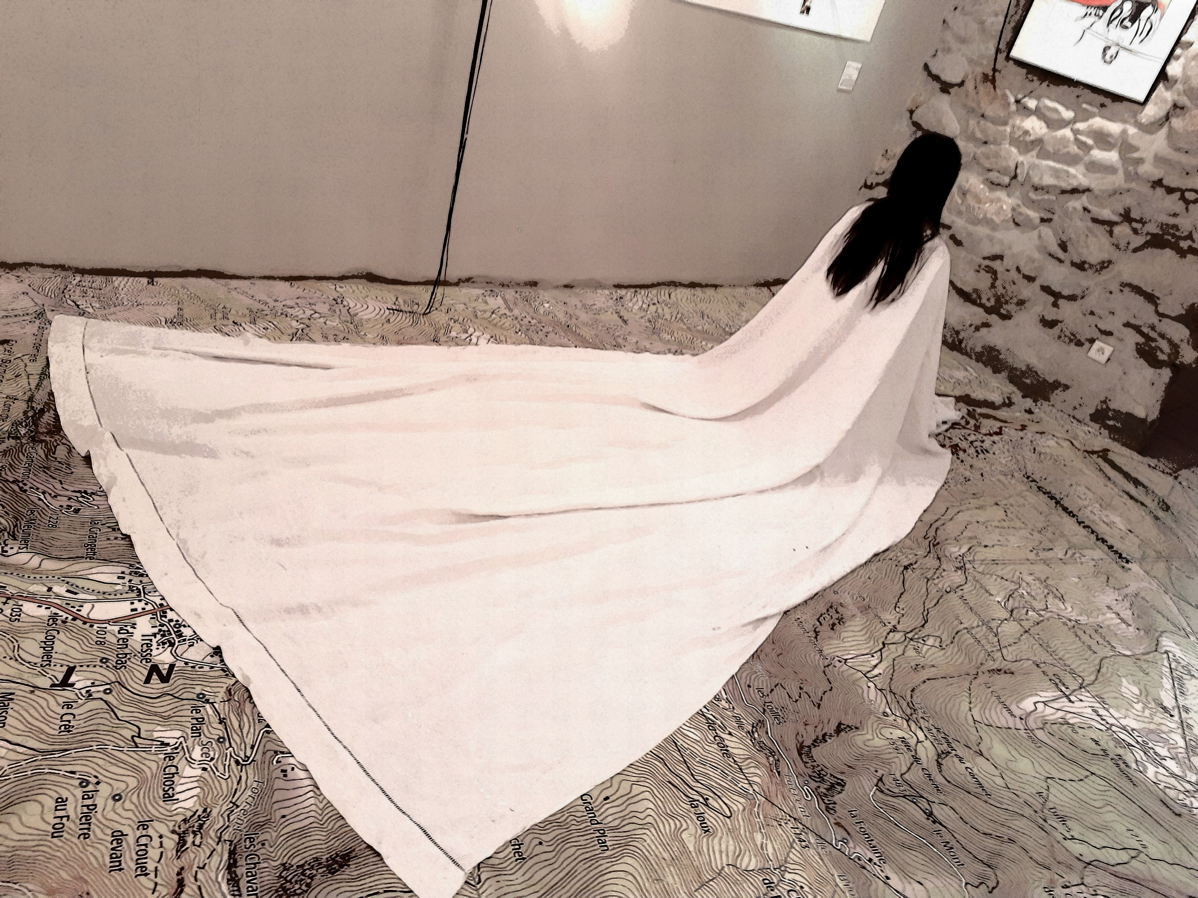 Performance participative en écho à celle proposée pour l’exposition Féminilité de Passy. Les visiteurs sont invités à utiliser les draps pour une pose. L’instant est immortalisé par une photo développée immédiatement avec une petite imprimante Polaroïd. La photo est ensuite collée sur la fresque murale.