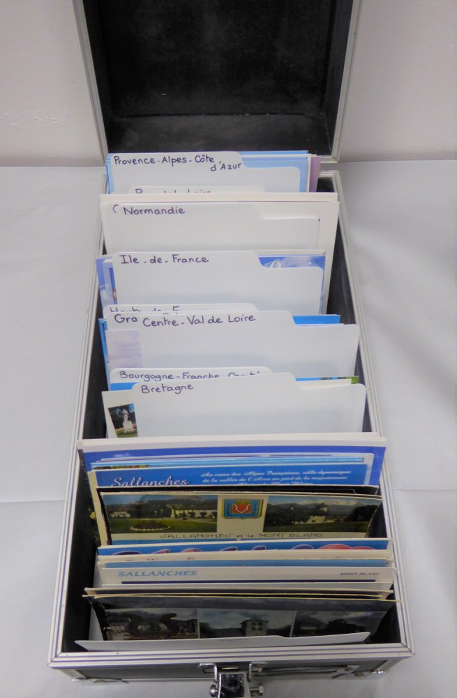 Vues du Mont-Blanc est une série de cartes postales françaises, éditées de manière industrielle, sur lesquelles figure le Mont-Blanc. Elles composent une collection commencée en juillet 2017 et sont classées en fonction de leur région d’origine dans une mallette comportant des intercalaires. Chaque carte postale correspond à un déplacement personnel dans la ville représentée. Elle a été choisie selon des critères établis par protocole : elle doit être de format paysage, comporter le nom de la ville sur son recto, ainsi qu’ un espace dédié à la présence du Mont-Blanc. La première région, Auvergne-Rhône-Alpes, est la seule qui contienne des cartes postales sur lesquelles le Mont-Blanc est reproduit industriellement, puisqu’elle est la région dans laquelle se trouve ce massif montagneux. Pour les villes de Sallanches et Passy, situées face au Mont-Blanc, la quantité de cartes postales est importante. Elles sont toutes différentes et ont été éditées à des époques différentes. La plus grande partie des cartes postales accueillent un Mont-Blanc qui a été ajouté manuellement à l’aide du Petit Tampon Mont-Blanc. Celui-ci a été enduit d’encre d’imprimerie blanche à l’aide d’un pinceau puis pressé sur la carte postale de manière à s’intégrer dans le paysage représenté. Quelques touches de pinceau supplémentaires ont contribué à rendre cette intégration optimale. Au cours du séchage, assez lent sur papier glacé, l’encre s’étale ou se rétracte, apportant à la carte postale un aspect inattendu. L’encre peut s’étendre au-delà de son emplacement d’origine et déborder sur des bâtiments, comme des coulées de lave engloutissant la ville petit à petit. Le Mont-Blanc prend alors un aspect monstrueux. Lorsqu’elle se rétracte, l’encre tend à faire éclater le Mont-Blanc dans un joyeux feu d’artifice. Lorsqu’elle reste posée bien épaisse à son emplacement d’origine et qu’elle contraste avec le bleu du ciel, le Mont-Blanc apparaît comme un intrus. L’encre peut aussi rester très diluée et se confondre avec les nuages. Le Mont-Blanc prend alors l’aspect d’un esprit venant hanter la ville. Toutes les cartes postales sont conservées, quelqu’en soit le résultat obtenu. Le hasard révèle souvent bien les choses.