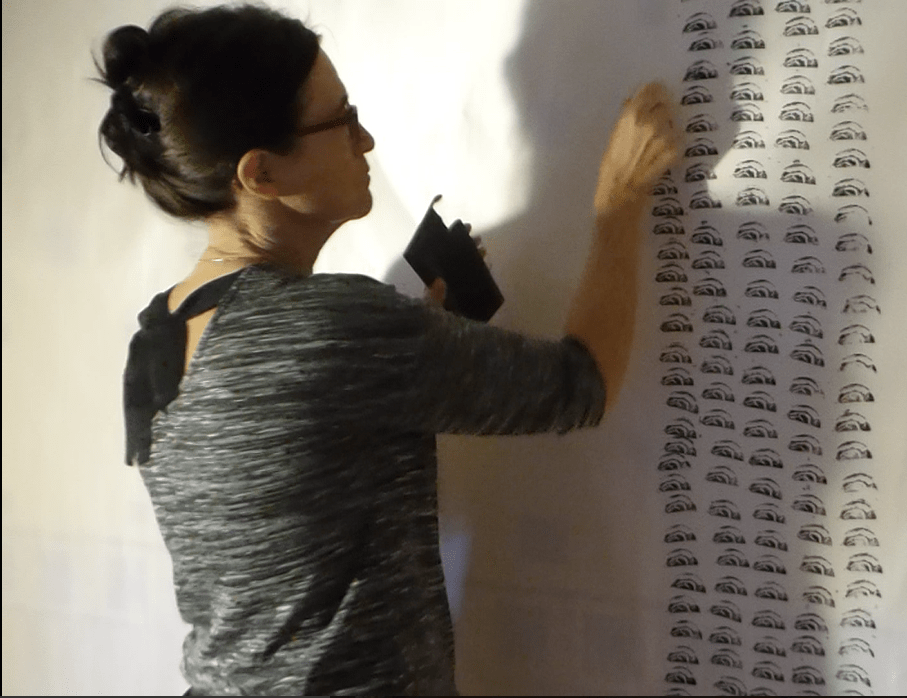 Le Yukata est traditionnellement un kimono d’été signifiant littéralement « vêtement de douche ». Je l’ai créé avec un tissu que j’ai tamponné à l’aide du petit tampon que j’ai fabriqué en linogravure en juillet 2017. Je porte mon Yukata lors de performances.